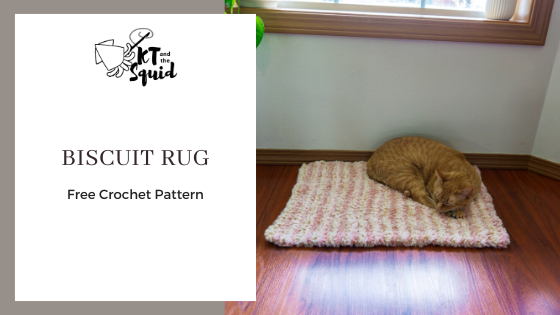The Biscuit Rug free crochet pattern is a super easy, super quick rug to crochet. This pattern uses only single crochet with a super bulky yarn and cats love it once it’s done!